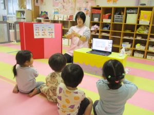 【11/12】花王主催の手洗い教室がありました。今時ならではのZoomでの開催で、全国のグループ会社の園が数日に分かれて参加しました。