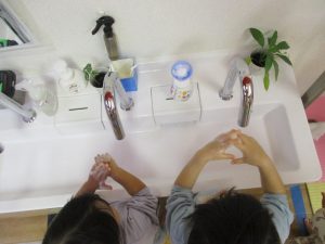 教えてもらった事を確認しながら手を洗っています。これからの季節、感染症対策にも大切な習慣ですのでご家庭でも一緒に行ってみて下さいね。