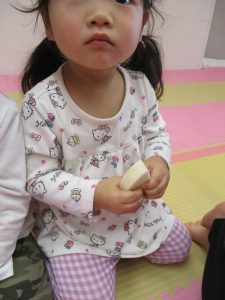 葉っぱの匂いをかいで「くさい」「葉っぱのにおい」と教えてくれました。切って中の様子もみましたよ。色々な体験をさせてあげたいですね。