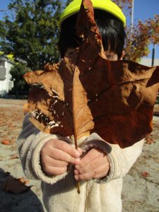 葉っぱの匂いをかいで「くさい」「葉っぱのにおい」と教えてくれました。切って中の様子もみましたよ。色々な体験をさせてあげたいですね。