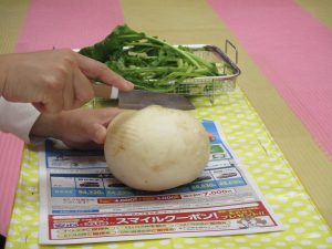 今月は給食にかぶがよくでます。旬野菜ですね。12月のピザクッキングもかぶを使います。