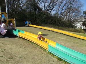 公園についてお約束です。他の保育園児、幼稚園児、小学生とたくさんのお友達がいました。長ーいローラー滑り台やアスレチック、スプリング遊具などいつもとは違う遊具でたっぷり遊び、待ちに待ったお弁当タイム🍱