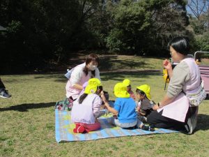 体調不良でお休みの子も数名いましたが、ぽかぽか陽気の中お別れ遠足に出かける事ができました。